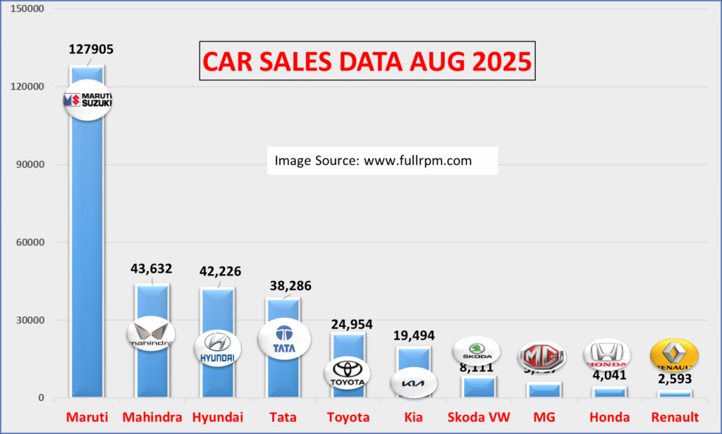 The month of August 2025 has brought some interesting movements in the Indian automobile industry. While Maruti Suzuki continues to dominate with its vast portfolio and dealership reach, other brands are steadily building their presence in specific segments like SUVs, EVs, and premium cars.