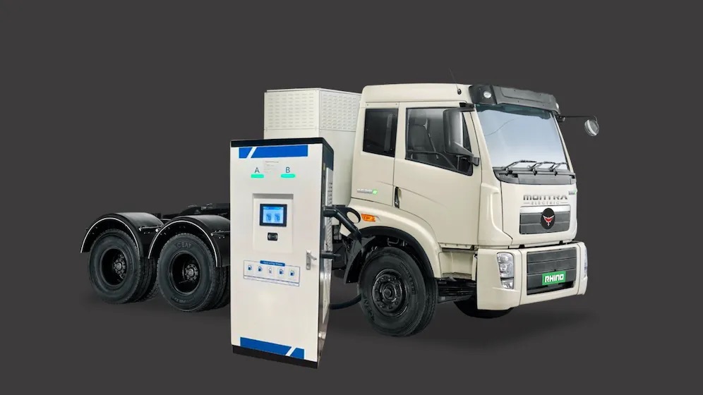 Montra Electric unveils the Rhino 5538 EV 4×2 truck with 282 kWh battery, 380 HP, battery-swap in 6 mins, 55-ton GVW. Redefining heavy EV trucking in India.